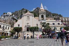 Allontanandosi dal corso Umberto I sulla destra della piazza del Duomo di Taormina si può vedere la casa Floresta, il cui cortile ha elementi architettonici quattrocenteschi nel portale ad arcata ogivale del piano terreno e nella scala (molto vicina a quella di palazzo Corvaja), e cinquecenteschi nelle due finestre architravate su mensoline al primo piano e nell’attiguo portale dall’arco a tutto sesto archivoltato. Sul lato opposto della piazza, è una gradinata che discende in Piazzale S. Domenico: qui è l’ex convento di S. Domenico, che conserva taluni elementi originali come il chiostro meridionale (sec. XVI) e il campanile della Chiesa (secoli XVII-XVIII). La fruizione alberghiera del complesso ha mantenuto parte dell’originale arredo monastico, integrandolo con mobilia in stile impero (seconda metà del sec. XIX). Sotto e dietro S. Domenico corre la panoramica via Roma, che costeggia il pendio dirupato ai piedi della città, con continue, magnifiche viste. Al termine della via è il giardino pubblico o Villa Comunale Duca Colonna di Cesarò, da cui si ha una bellissima vista sull’Etna e la costa da Giardini ad Acireale. Proseguendo per la via Bagnoli Croce ci si va a immettere sulla via Pirandello in prossimità del colombario bizantino: alle spalle di questo è l’ex convento di S. Maria di Gesù, che conserva un chiostro dei primi decenni del sec. XVI.