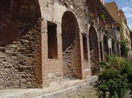 I romani, oltre a rimodernare la città, pensarono anche a dotarla di quelle strutture di servizio necessarie allo sviluppo economico, fra le quali vi era la costruzione di un sistema di raccolta delle acque sorgive in capienti cisterne. Le cosiddette Naumachie costituiscono la testimonianza di tale impegno: questa poderosa cortina muraria, in luce per 122 m, serviva a consolidare il terrapieno a monte per la costruzione di un’enorme cisterna, dalla quale si diramavano ulteriori condutture idrauliche per l’irrigazione dei dei terreni a valle. Tra gli edifici che insistono sulle strutture romane è la Chiesa di Santa Maria del Piliere, ora adibita a negozio, che conserva il portale architravato e archivoltato a sesto acuto (inizi sec. XVI). Proseguendo in corso Umberto I, si incontrano sulla sinistra l’ex Chiesa di Sant’Agostino (1486) e più avanti sulla destra, in cima a una gradinata, il palazzo Ciampoli (1412; ora albergo), di forme gotico-catalane, con un piano di esili bifore.